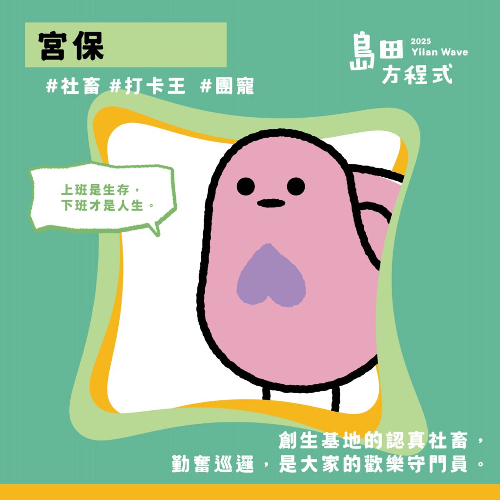 我們在基地的日常裡,慢慢發現有些人總是默默付出、有些人總是幫大家串聯、有些人天馬行空、有些人穩穩接住別人……這些生活裡的角色,就變成了我們創造出來的「島田角色們」。
